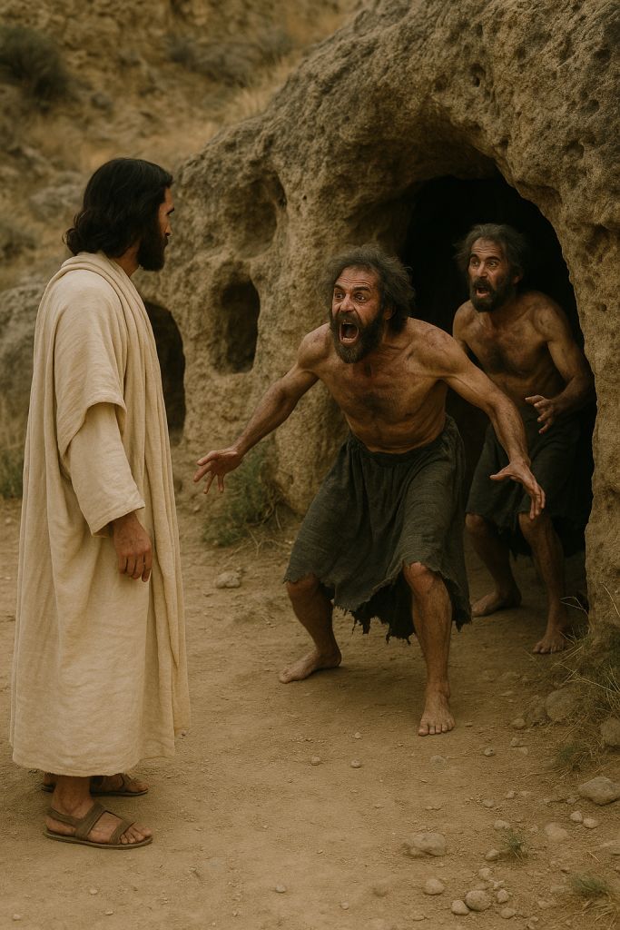 Ich stand da, und ich sah sie. Nicht ihre Verwirrung. Nicht ihre Gewalt. Ich sah die Männer, die sie einmal gewesen waren - und die sie im Tiefsten immer noch waren. Sie flehten, dass ich sie nicht quälen möge. Aber ich war nicht gekommen, um zu quälen. Ich war gekommen, um zu lösen, was gebunden war. Um zu trennen, was nicht zusammengehörte. Um die Würde zu suchen, die selbst unter Steinen von Schmerz noch nicht erstorben ist. Die Kräfte, die sie an sich rissen, wollten fliehen. Ich ließ es zu, denn Heilung ist manchmal ein Weg durch das Erzittern hindurch. Und als die Schweine davonrannten und ins Wasser stürzten, war ein Moment lang Chaos, Lärm, Erschrecken.